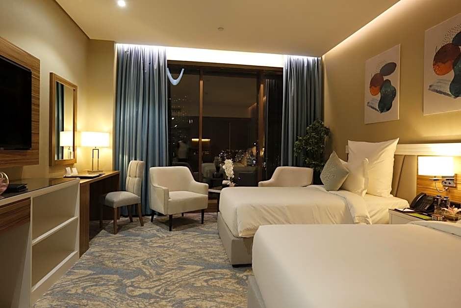 This spacious suite comes with 1 living room, 2 separate bedrooms and 3 bathrooms with a shower and free toiletries. The air-conditioned suite features a flat-screen TV, a mini-bar, a seating area, a wardrobe as well as city views. The unit has 3 beds.